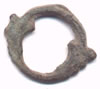 This is a piece of Ringmoney dating from between 200BC and 300AD. Before the introduction of struck coinage in Celtic lands, Celtic ring money (gold, silver and bronze rings), celtic arrowhead and bell money were used as currency in Celtic lands in Danube area, France , England and Ireland . Sometimes these rings took a pretty elaborate shape (such as "wheel money" in Gaul , star-shaped rings, interlinked rings etc.) and are very interesting collectible items, that can also be used as wonderful pendants or finger rings.