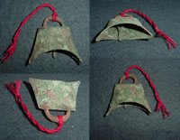 Late Shang through early Chou Dynasties, ca 13th-12th Century BC, Bronze (string) Money, excavated from a tomb at province Liao Ning(NE of Beijing), Old Yian Kingdom, string of 5 ovate demishperes joined by a bar at back, 39mm long ( http://www.ancient-art.com/china.htm) |