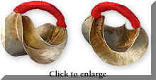 The currencies with the most obvious artistic values are the various bracelets, collars and earrings crafted from gold and silver. Large gold earrings, called kwottenai, are worn by married Fulani women in Mali. They are handed down from mother to daughter or by purchase when a husband makes a gift to his wife. Kwottenai can become very large, representing the accumulated wealth of several generations. They are formed from gold bars that are beaten into thin blades, which are then formed into crescent shape. Often the blades are incised with figures, flowers or cattle. The mercantile value of these earrings is calculated by the weight of the gold, but the artistry of the goldsmith contributes greatly to the prestige of the owner. |